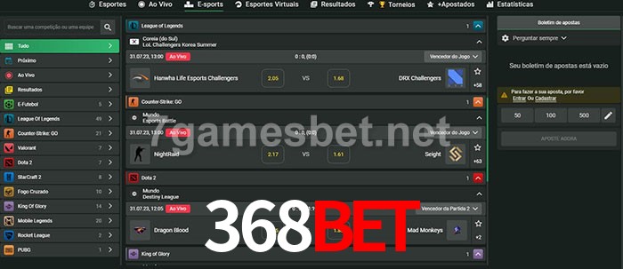 O 368bet oferece uma grande seleção de opções de apostas em e-sports com probabilidades competitivas